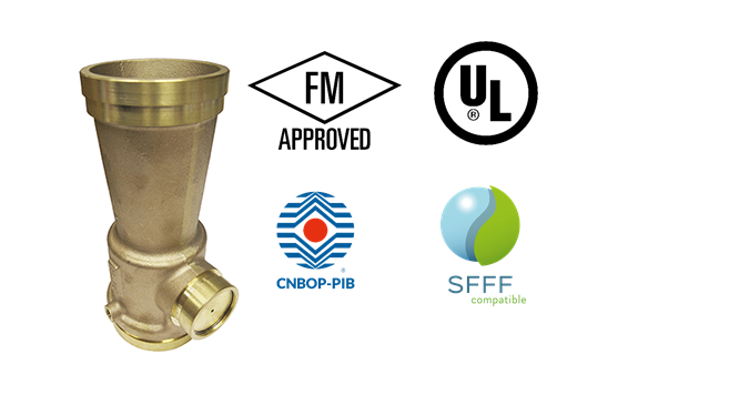 | Połączenie | Typ środka pianotwórczego*** | Numer katalogowy (brąz niklowo-aluminiowy)** | Średnica otworu wlotowego piany | Aprobata FM | Wykaz UL (UL Listing) | ||||||||