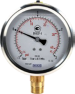 | Manometr glicerynowy | -1 - 3 bar / -14 - 43 psi | 204239 | 0,1 bar/1 psi | 0,9 (0,04) |