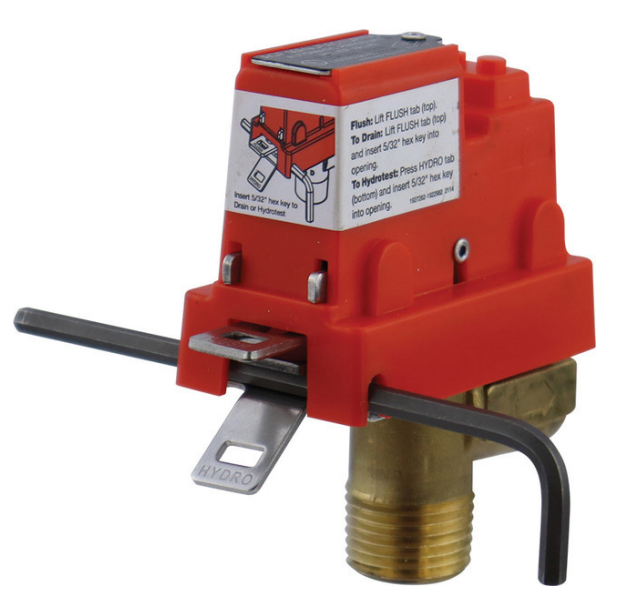 | Uwaga! Normy UL i FM dotyczące zaworów bezpieczeństwa w systemach tryskaczowych wymagają, aby zawory bezpieczeństwa działały w zakresie swoich wartości znamionowych. FM wymaga, aby zawór bezpieczeństwa otwierał się przy ciśnieniu nie mniejszym niż 85% jego wartości znamionowej, a UL wymaga otwierał się przy ciśnieniu nie większym niż 105% jego wartości znamionowej. Obie normy wymagają, aby zawory bezpieczeństwa zamknęły się w zakresie o wartość procentową poniżej wartości otwarcia. Wybierz zawór bezpieczeństwa, porównując ciśnienie statyczne z 90% wartości znamionowej zaworu bezpieczeństwa, aby określić szacowane minimalne otwarcie i 80% wartości znamionowej zaworu bezpieczeństwa dla przybliżonego maksymalnego zamknięcia. Zawór bezpieczeństwa powinien być zainstalowany w miejscu, w którym jest łatwo dostępny w celu konserwacji. Należy zadbać o to, aby zawór bezpieczeństwa nie mógł zostać odizolowany od systemu, gdy system jest w ruchu. Zawór bezpieczeństwa nigdy nie powinien mieć zaworu odcinającego ani korka za wylotem. | |