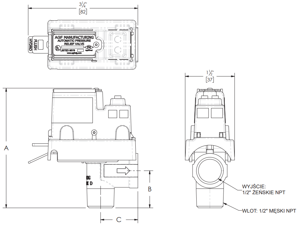 | Połączenie | Wlot 1/2" męski, wylot 1/2' żeński |