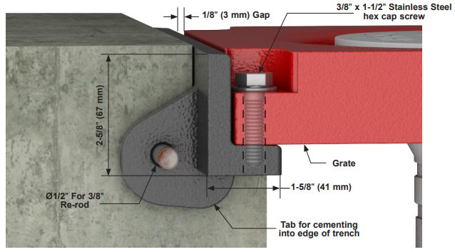 - Rama „X-Frame” dostarczona z zespołem dyszy posadzkowej powinna zostać osadzona w betonie z użyciem prętów zbrojeniowych, jak pokazano na rys. 7.1.2.